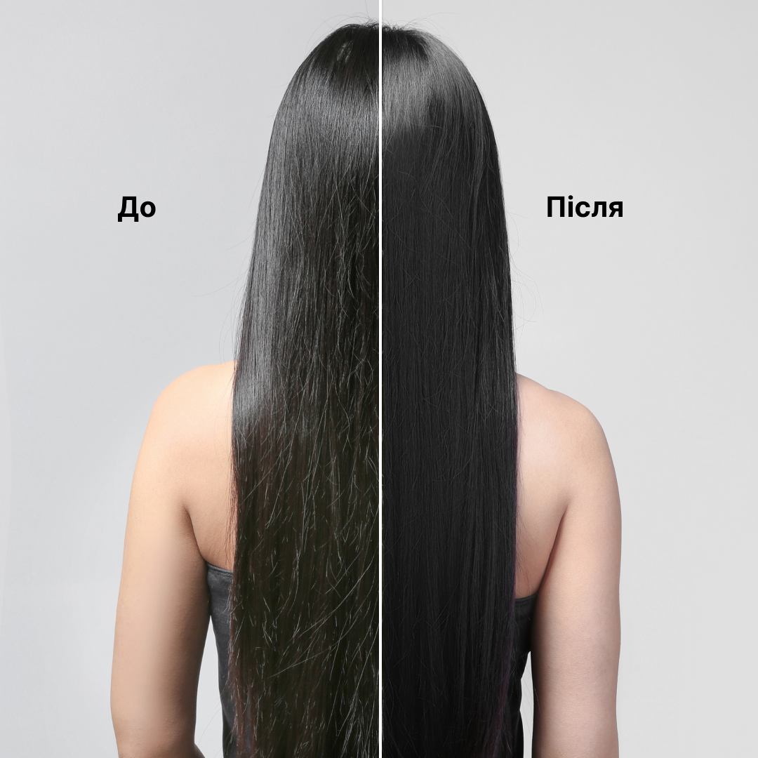 Неправильно підібраний догляд, як-от використання агресивних шампунів — пошкоджує кутикулу волосся, яка утримує пігмент. Через це колір вимивається швидше, волосся стає тьмяним і втрачає яскравість. Sinergy врахували це й створили цю розумну маску. Тільки подивіться на результати без маски та з маскою після 33 миттів.